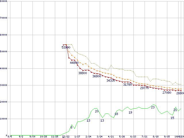 | ST3400832AS (400GB)の価格推移 | | | (2004年8月5日~2005年10月20日) |