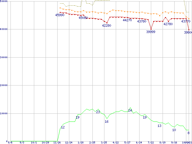 | Pentium 4 560J (3.60GHz)の価格推移 | | | (2004年8月6日~2005年10月21日) |