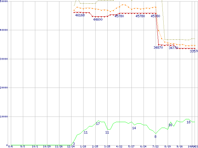 | Pentium M 760 (2GHz)の価格推移 | | | (2004年8月6日~2005年10月21日) |