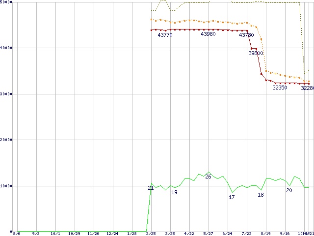 | Pentium 4 650 (3.40GHz)の価格推移 | | | (2004年8月6日~2005年10月21日) |