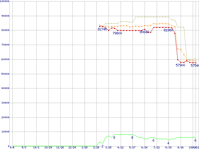 | Xeon 3.40GHz (L2 2MB)の価格推移 | | | (2004年8月6日~2005年10月21日) |
