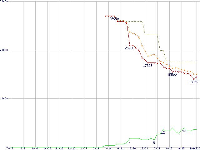 | WD3200JD (320GB)の価格推移 | | | (2004年8月5日~2005年10月20日) |