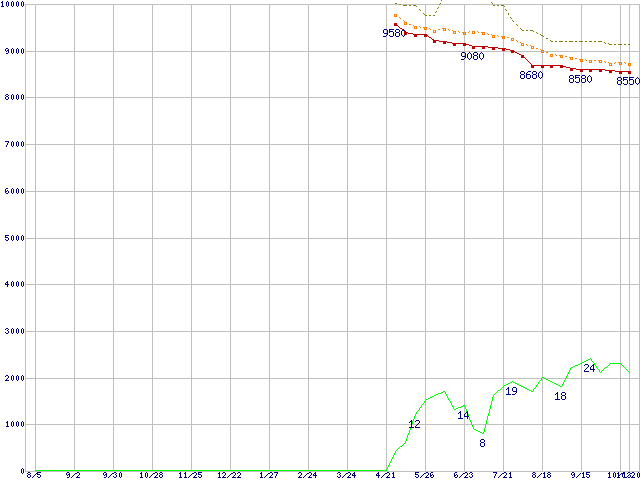 | 6L160M0 (160GB,8MB)の価格推移 | | | (2004年8月5日~2005年10月20日) |
