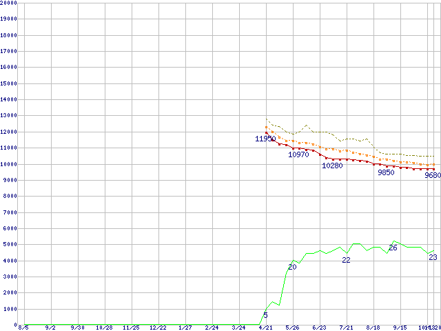 | 6L200M0 (200GB,8MB)の価格推移 | | | (2004年8月5日~2005年10月20日) |