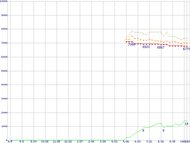 | 6L080M0 (80GB,8MB)の価格推移 | | | (2004年8月5日~2005年10月20日) |