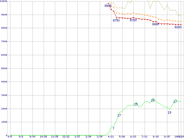 | 6L160P0 (160GB,8MB)の価格推移 | | | (2004年8月5日~2005年10月20日) |
