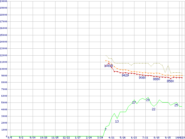 | HDT722516DLA380 (160GB,8MB)の価格推移 | | | (2004年8月5日~2005年10月20日) |