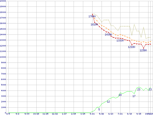 | 7L250S0 (250GB)の価格推移 | | | (2004年8月5日~2005年10月20日) |