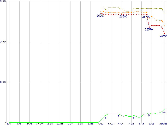 | Turion 64 MT-32 (1.8GHz,512KB) バルクの価格推移 | | | (2004年8月6日~2005年10月21日) |