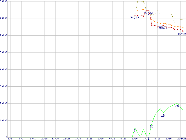 | Athlon 64 X2 4400+ (2.2GHz,L2 1MBx2)の価格推移 | | | (2004年8月6日~2005年10月21日) |