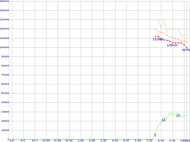 | Athlon 64 X2 4800+ (2.4GHz,L2 1MBx2)の価格推移 | | | (2004年8月6日~2005年10月21日) |