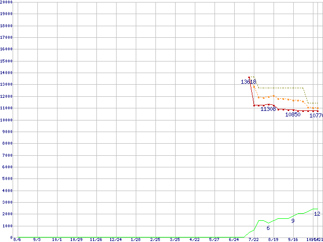 | Celeron D 341 (2.93GHz)の価格推移 | | | (2004年8月6日~2005年10月21日) |