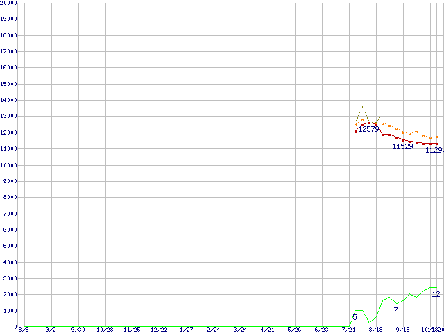 | WD2500JS (250GB)の価格推移 | | | (2004年8月5日~2005年10月20日) |
