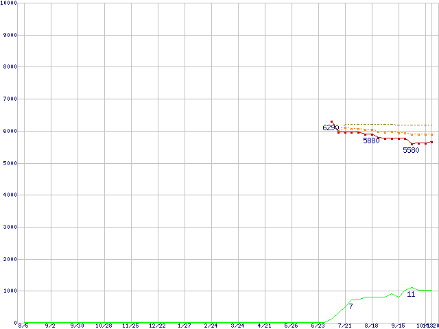 | 6L040P0 (40GB,8MB)の価格推移 | | | (2004年8月5日~2005年10月20日) |