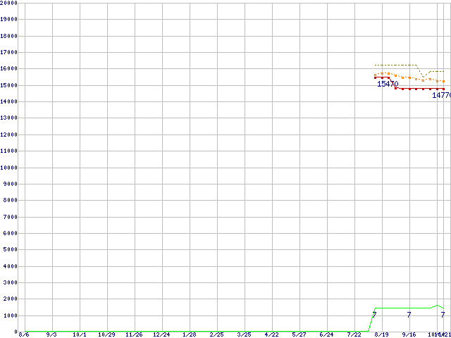 | Sempron 3300+ (2GHz,L2 128KB,64bit対応)の価格推移 | | | (2004年8月6日~2005年10月21日) |