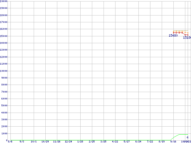| Mobile Athlon 64 3000+(1.8GHz) バルクの価格推移 | | | (2004年8月6日~2005年10月21日) |
