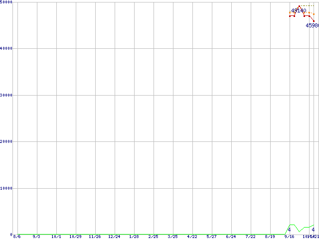 | Opteron 150(2.4GHz)の価格推移 | | | (2004年8月6日~2005年10月21日) |