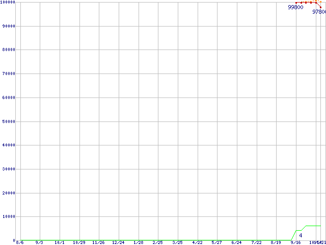 | Opteron 152(2.6GHz)の価格推移 | | | (2004年8月6日~2005年10月21日) |