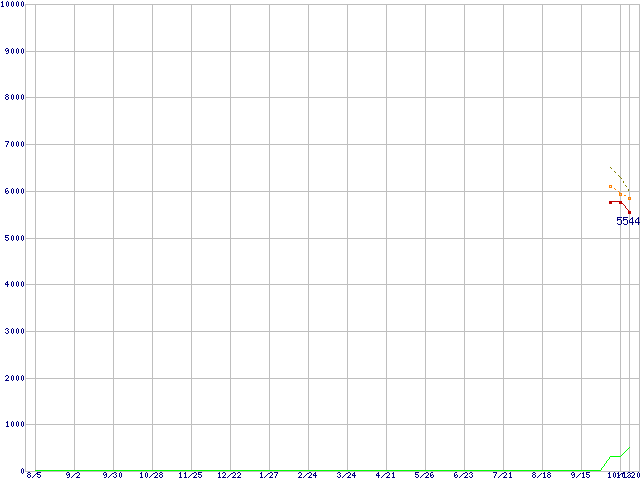 ※このグラフは過去のデータも税率5%相当に調整した税込み相当額のグラフです。 税率変更や、総額表示方式導入(2004年4月)の影響は除いています。 | | | ●凡例 | 最安値 (点線部は販売店未確認 または未調査) | 平均値 | 最高値 | ショップ数 |