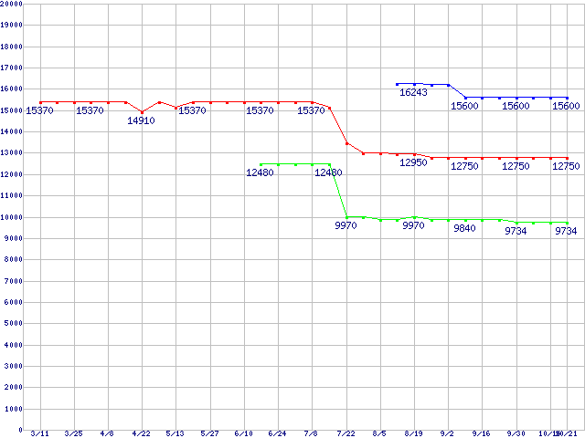 Socket 478 (FSB 533MHz,L2 256KB)の最安値推移