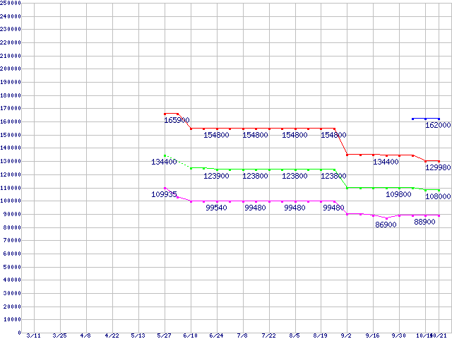 Socket 940 (FSB 1000MHz,L2 1MBx2,Dual Core)の最安値推移