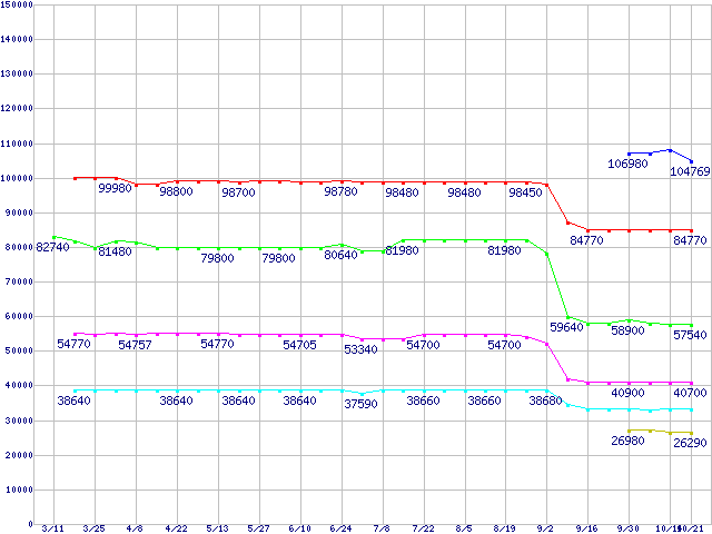 Socket 604 (FSB 800MHz,Dual Core,L2 2MB×2)の最安値推移