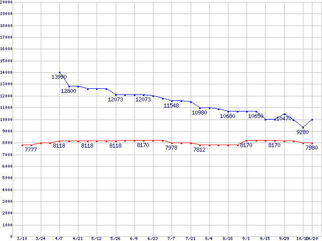 WD Caviar[Special Edition] (7200rpm,Ultra ATA/100,8MB)の最安値推移