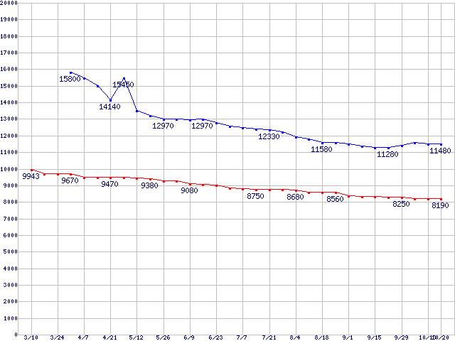 Deskstar 7K400 (7200rpm,Ultra ATA/100)の最安値推移