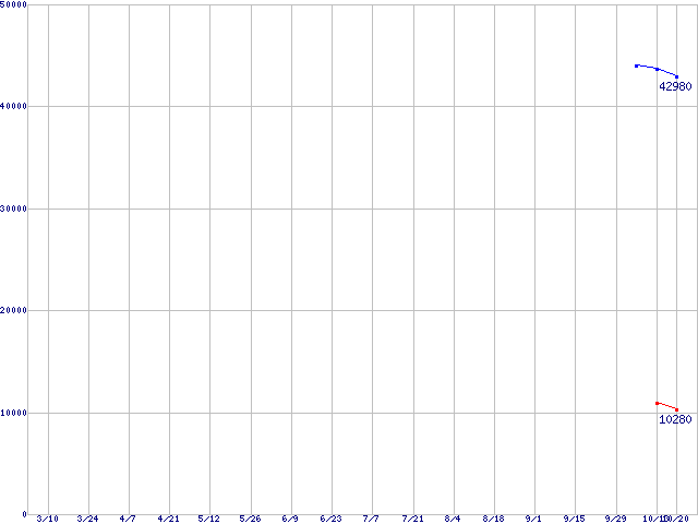 | Barracuda 7200.9 (7200rpm,Serial ATA II/3Gbps)の最安値推移 | | | (2005年3月10日~2005年10月20日) |