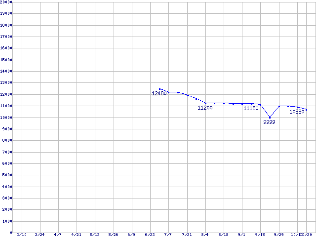 | SpinPoint (7200rpm,Ultra ATA/133,8MB)の最安値推移 | | | (2005年3月10日~2005年10月20日) |
