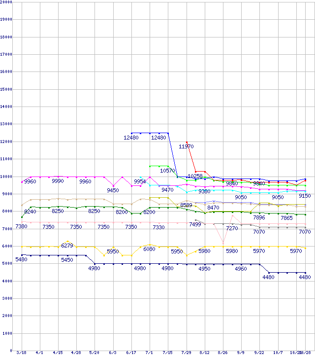 CPU主要製品(最安値1万円~2万円未満)の最安値推移
