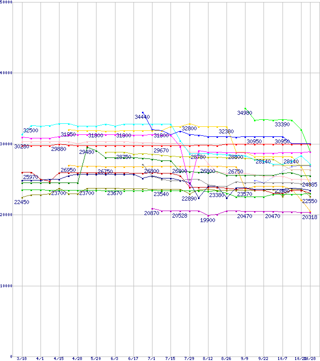 CPU主要製品(最安値2万円~3万円未満)の最安値推移