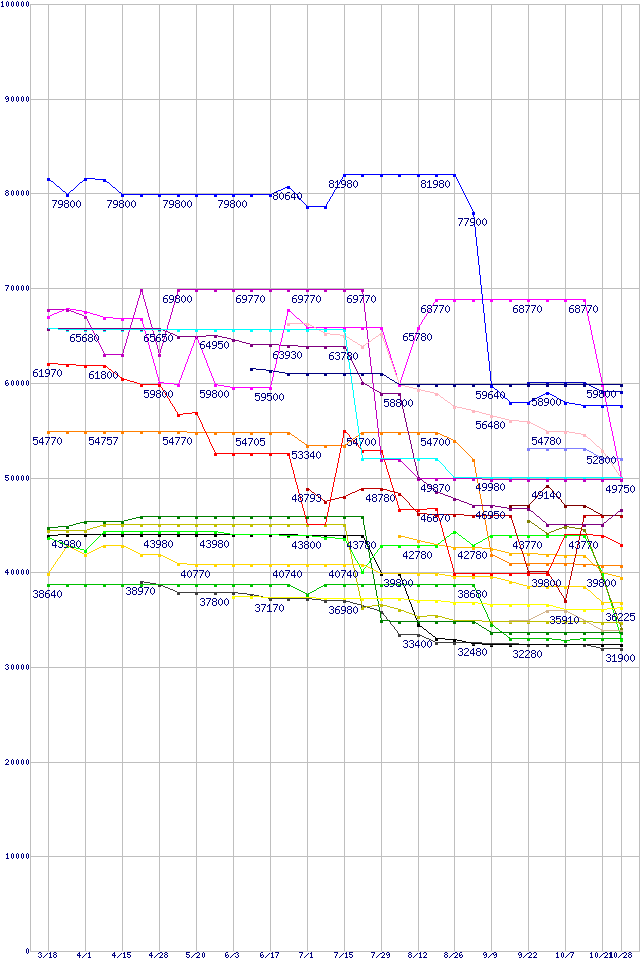 CPU主要製品(最安値3万円~6万円未満)の最安値推移