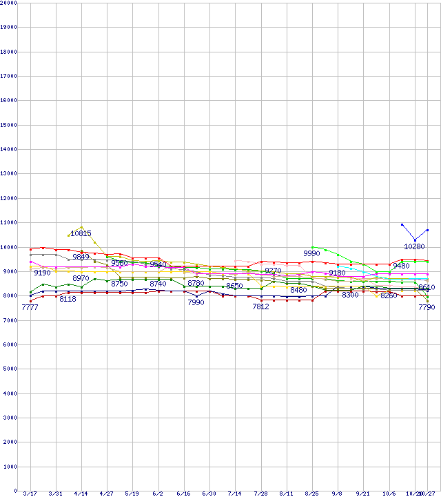 ※製品名をクリックすると個別のグラフを表示します ※点線部は販売店が確認できなかった、または調査データがないことを示します |