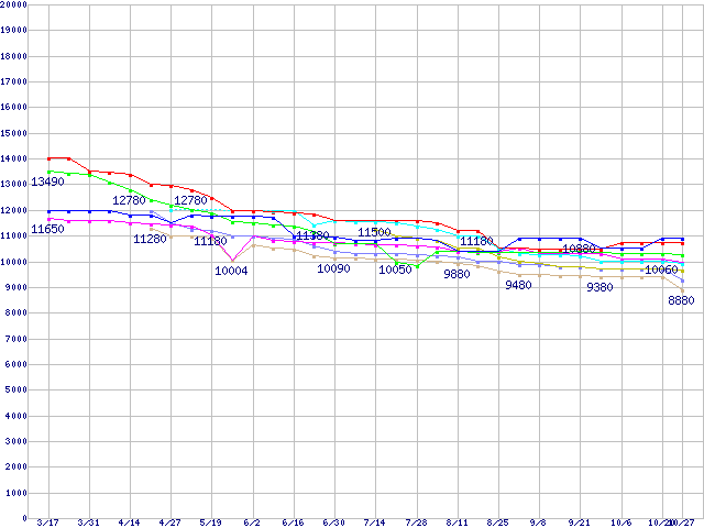 ※点線部は販売店が確認できなかった、または調査データがないことを示します