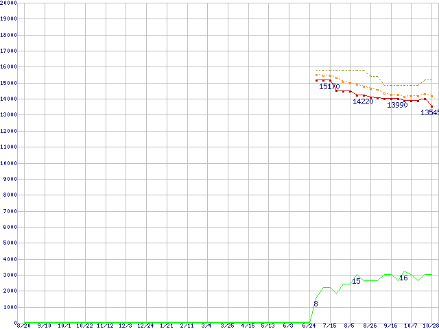 | Celeron D 350 (3.2GHz)の価格推移 | | | (2004年8月20日~2005年10月28日) |