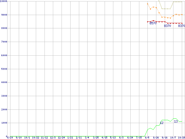 | Sempron 2800+ (1.6GHz,L2 256KB)の価格推移 | | | (2004年8月20日~2005年10月28日) |