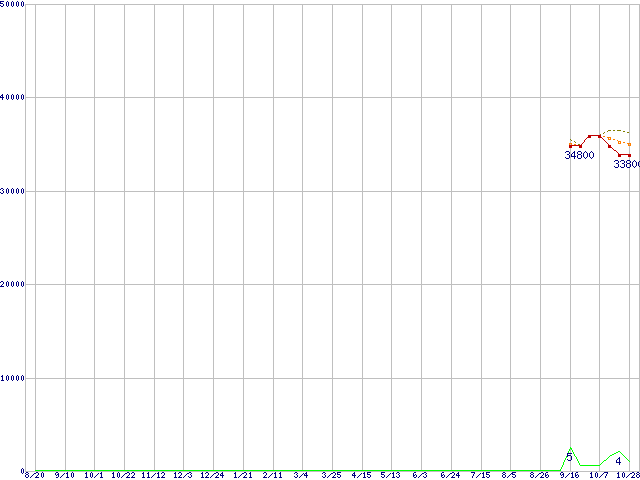 | Opteron 148(2.2GHz)の価格推移 | | | (2004年8月20日~2005年10月28日) |