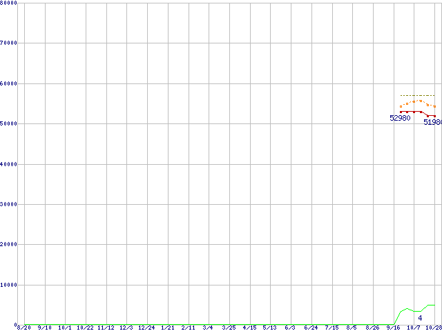| Opteron 165 (1.8GHz)の価格推移 | | | (2004年8月20日~2005年10月28日) |