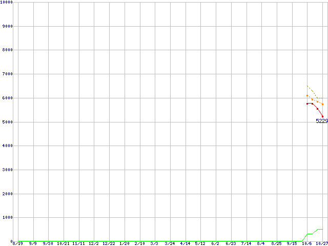 ※このグラフは過去のデータも税率5%相当に調整した税込み相当額のグラフです。 税率変更や、総額表示方式導入(2004年4月)の影響は除いています。 | | | ●凡例 | 最安値 (点線部は販売店未確認 または未調査) | 平均値 | 最高値 | ショップ数 |