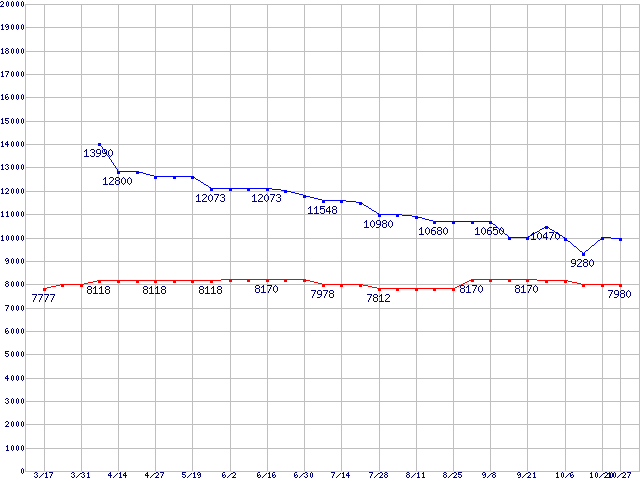 WD Caviar[Special Edition] (7200rpm,Ultra ATA/100,8MB)の最安値推移