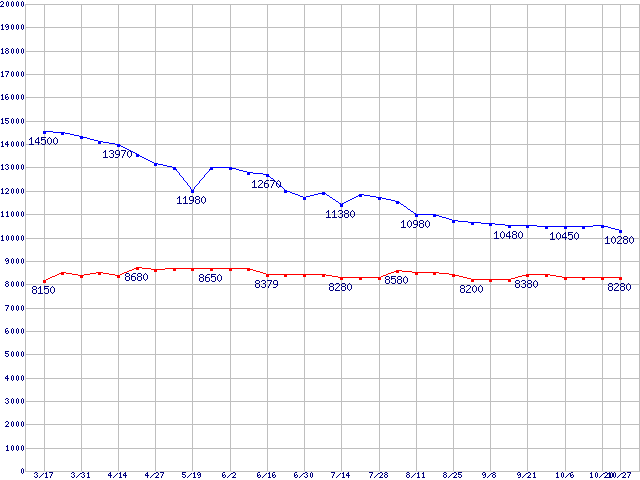 Deskstar 7K250 (7200rpm,Ultra ATA/100)の最安値推移