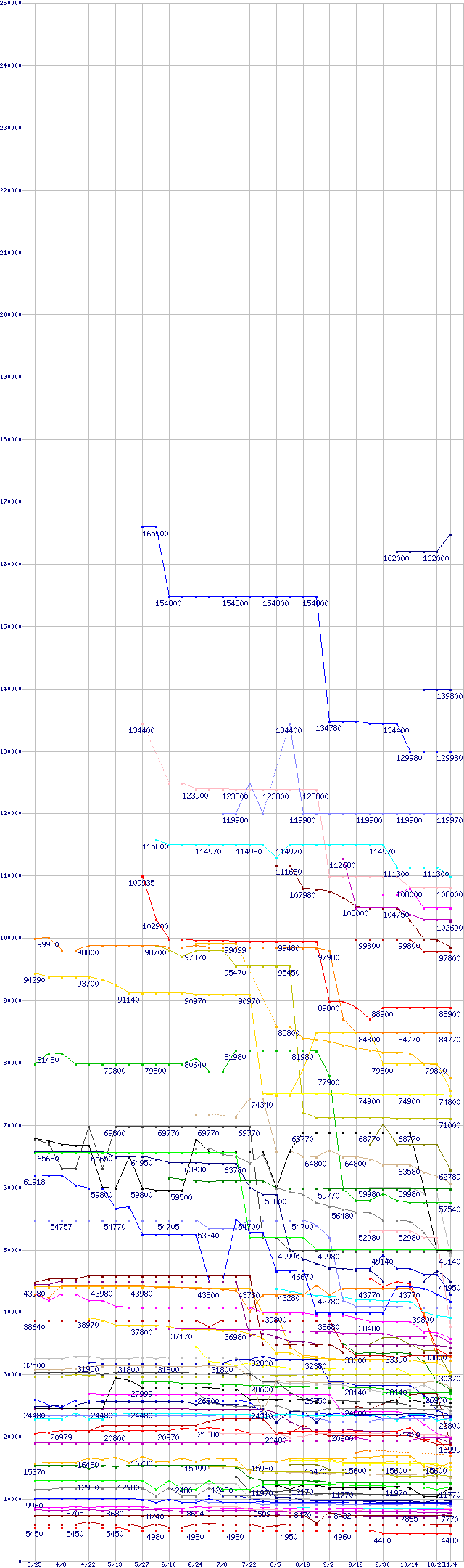 ※製品名をクリックすると個別のグラフを表示します ※点線部は販売店が確認できなかった、または調査データがないことを示します |