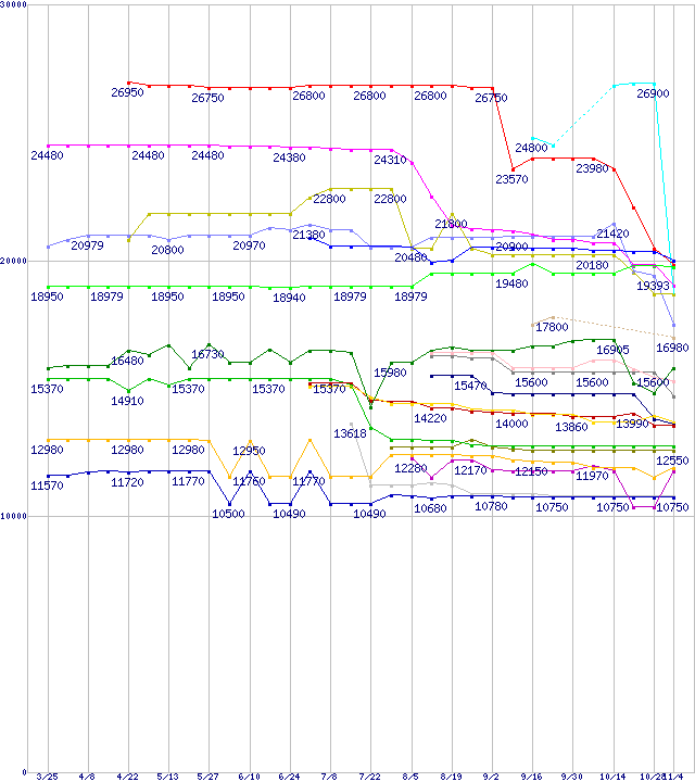 CPU主要製品(最安値2万円~3万円未満)の最安値推移