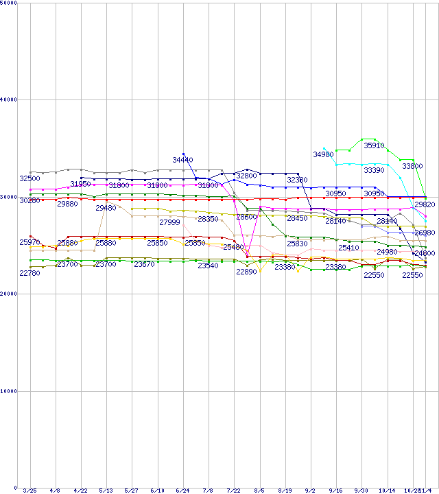 CPU主要製品(最安値2万円~3万円未満)の最安値推移