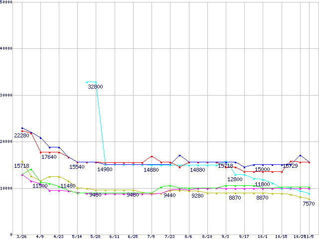 メモリ主要製品の最安値推移