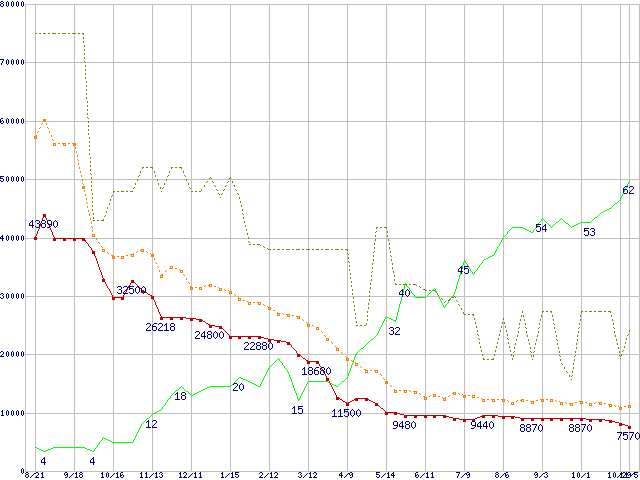 PC2-4200*(DDR2-533) DDR2 SDRAM DIMMの最安値推移