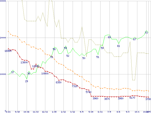 PC2-4200*(DDR2-533) DDR2 SDRAM DIMMの最安値推移