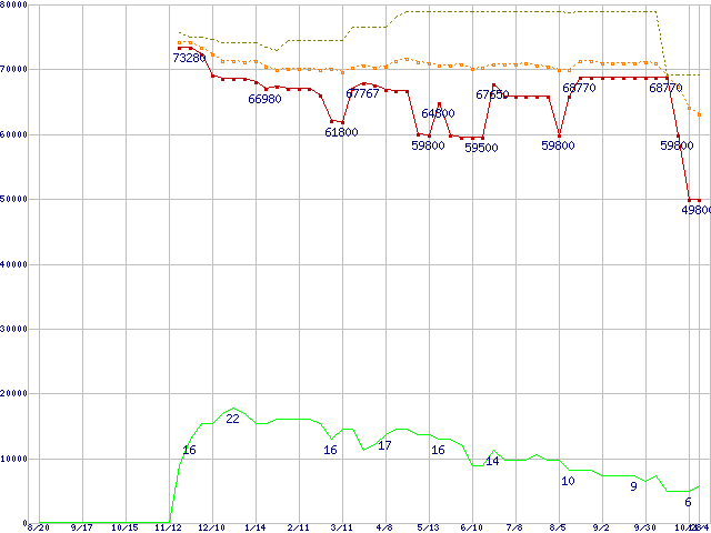 | Pentium 4 570J (3.80GHz)の価格推移 | | | (2004年8月20日~2005年11月4日) |