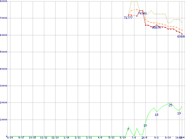 | Athlon 64 X2 4400+ (2.2GHz,L2 1MBx2)の価格推移 | | | (2004年8月20日~2005年11月4日) |